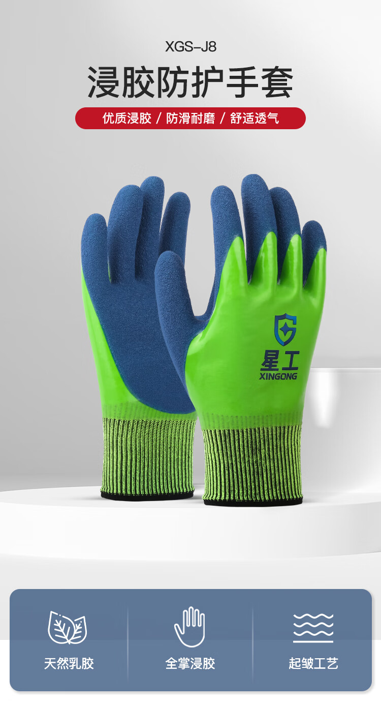 星工(XINGGONG)浸胶线手套 防滑耐磨乳胶皱纹手套 XGS-J8